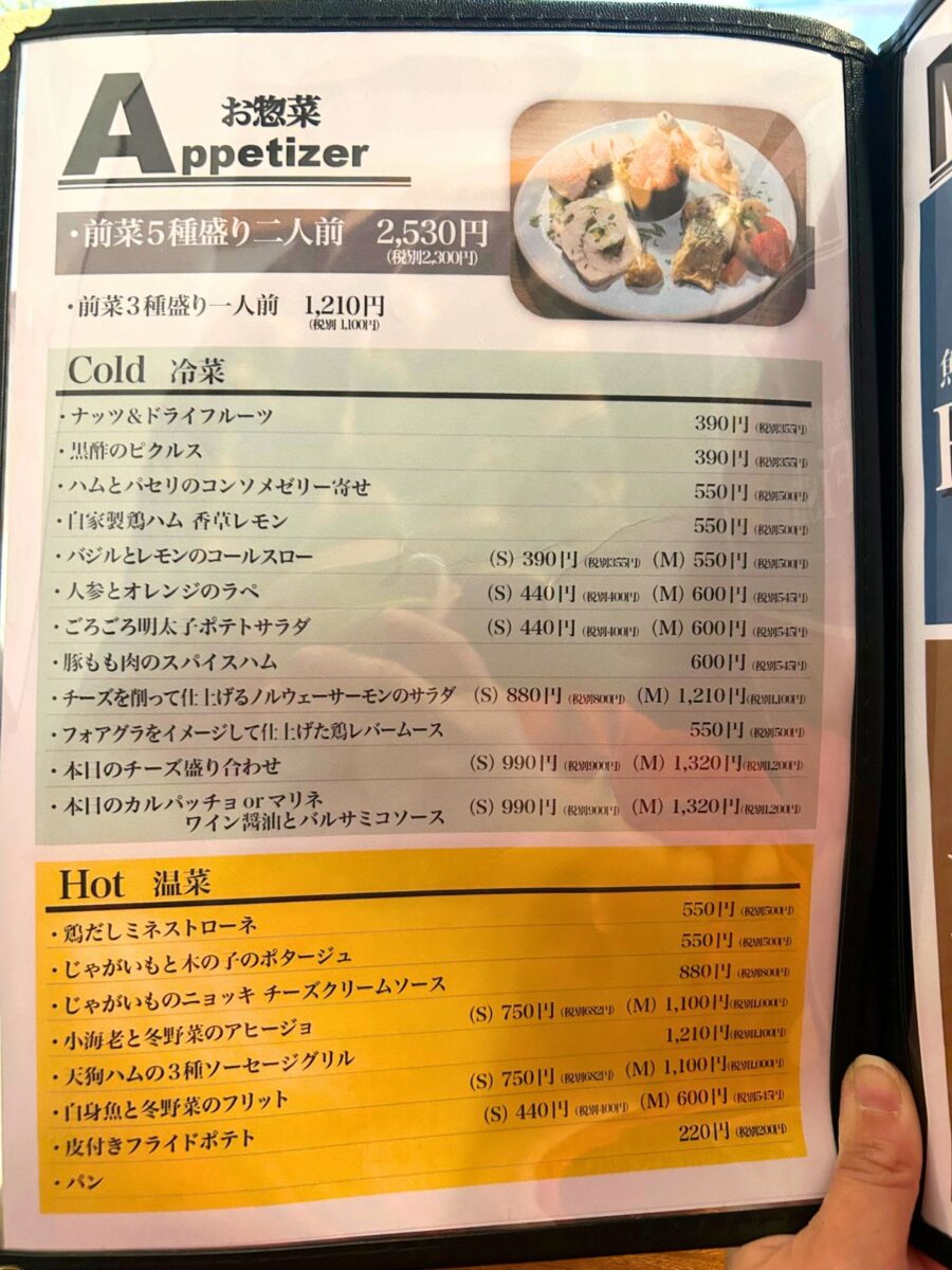 他にも前菜盛り合わせや冷温それぞれのお惣菜メニューがたくさん↓