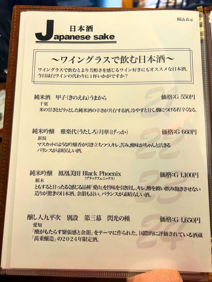 日本酒もワイングラスで飲めるそう。ワイン好きにオススメな日本酒ラインナップ。