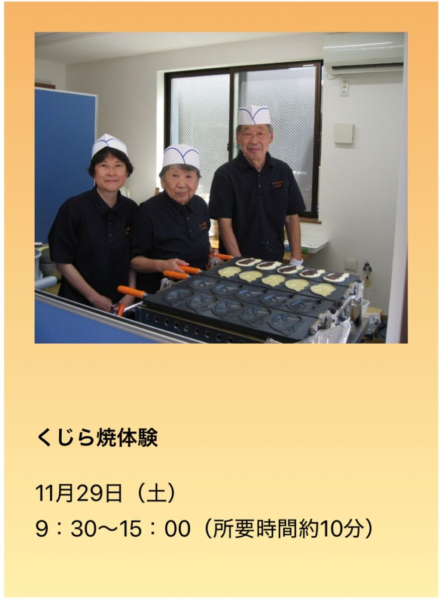 『にこにこ本舗 くじら焼』ではくじら焼き作り体験を開催↓