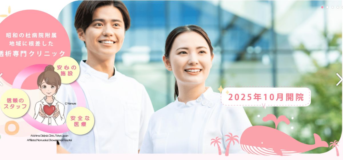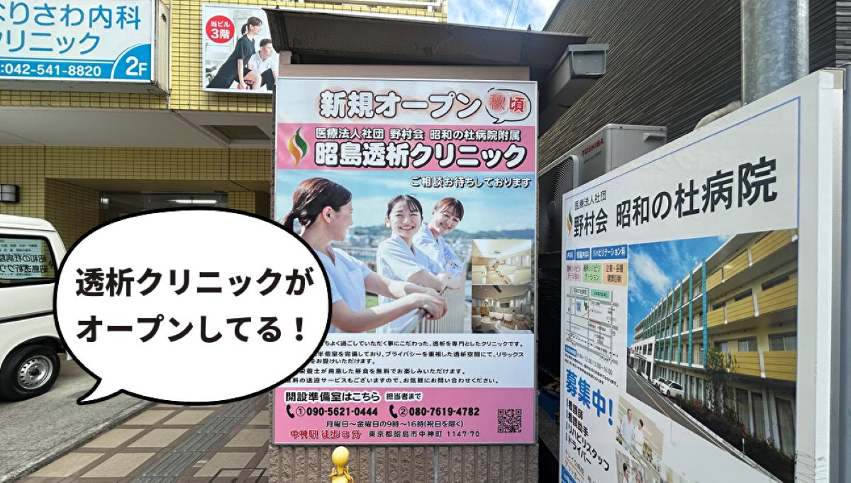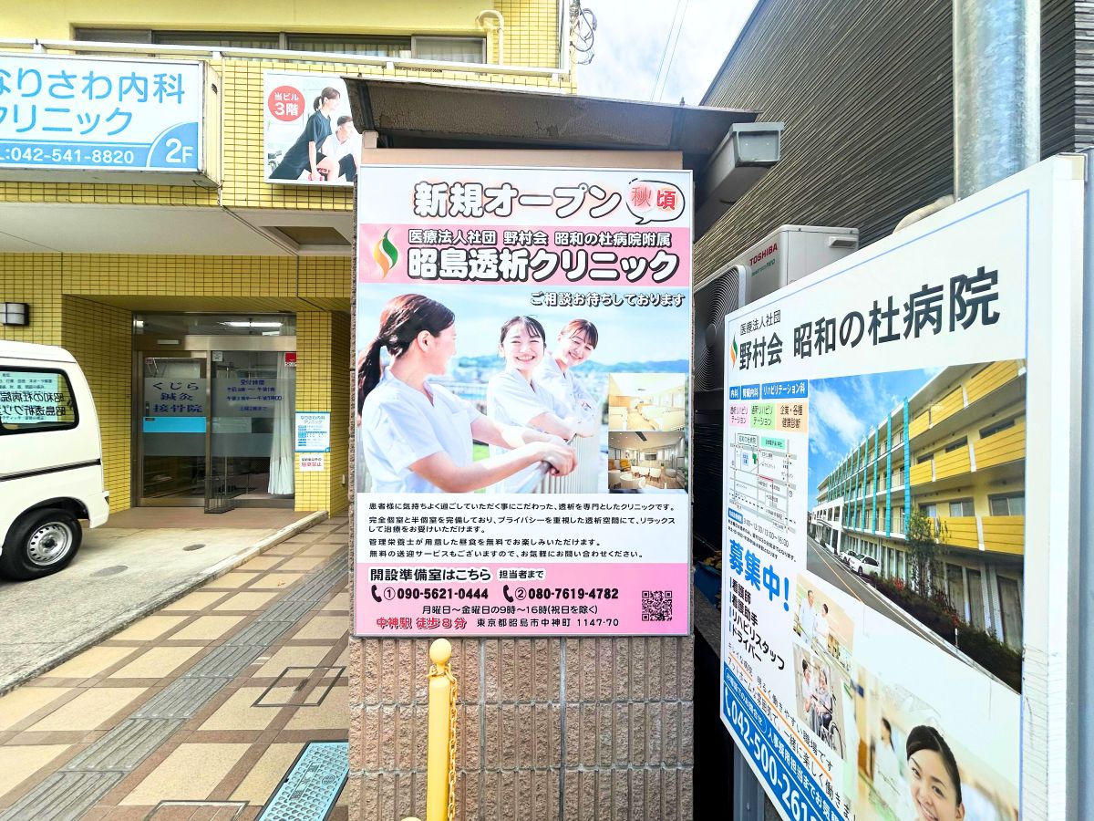 医療法人社団 野村会 昭和の杜病院附属『昭島透析クリニック』って書いてあります。