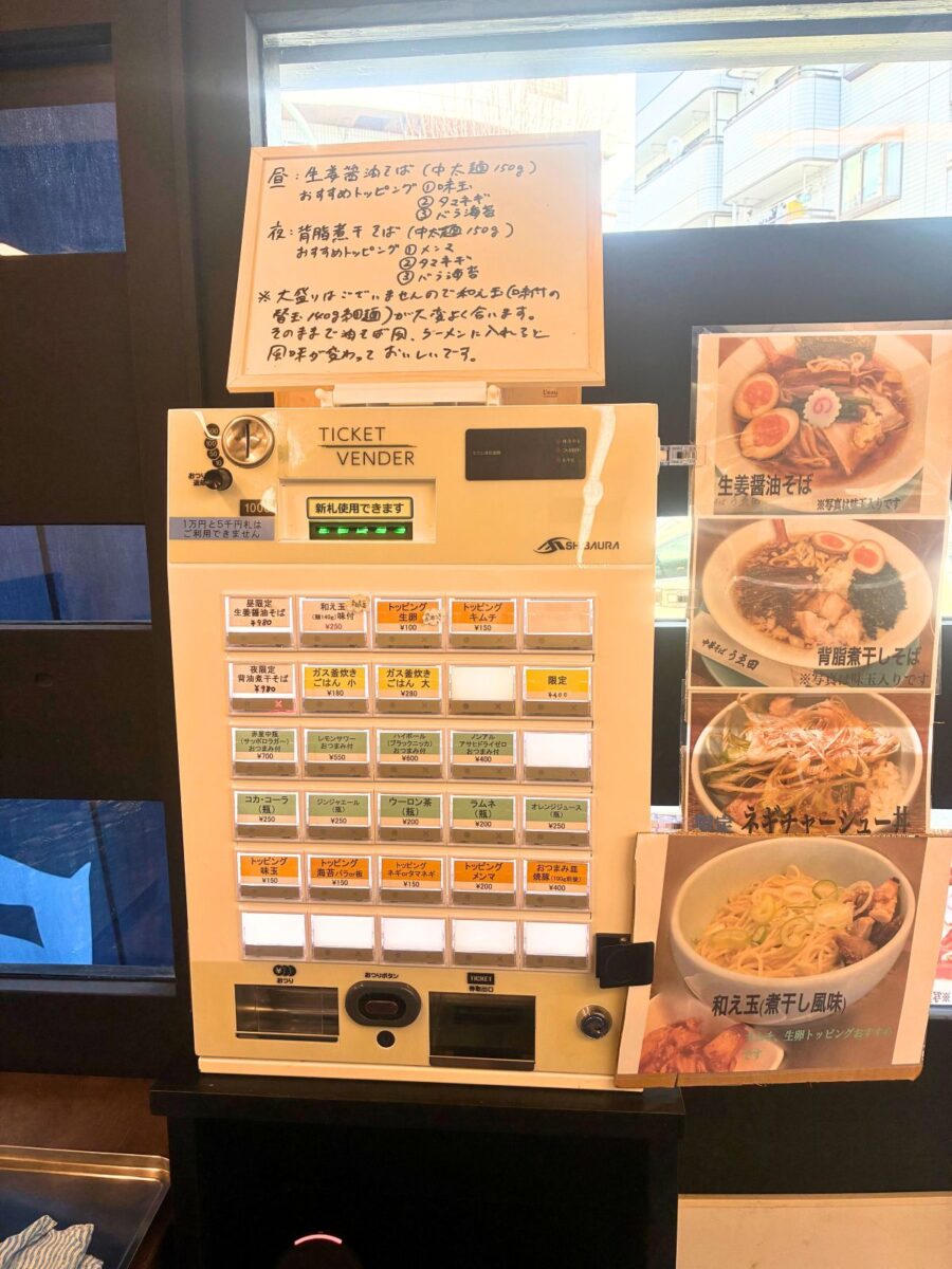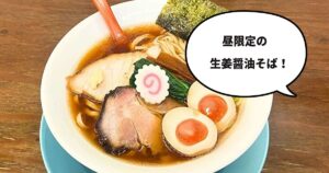 注文できる中華そばはシンプルに1種類のみ。昼は「生姜醤油そば」、夜は「背脂煮干そば」と内容が変わります。