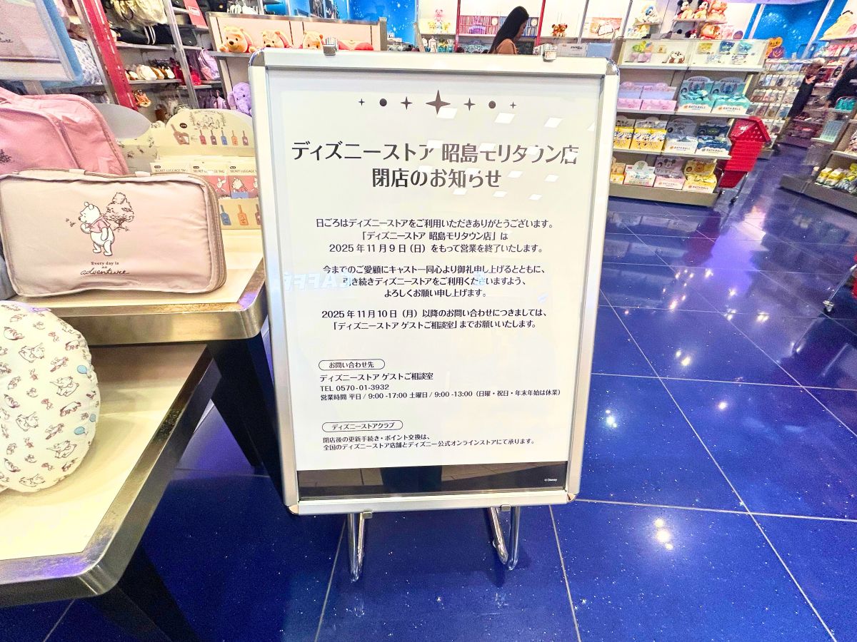 『ディズニーストア 昭島モリタウン店』は11月9日(日)をもって営業を終了いたします。