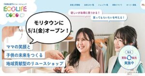 子ども用品専門のリユースショップ『ECOLIFE COCO モリタウン店』がオープンするみたいです。