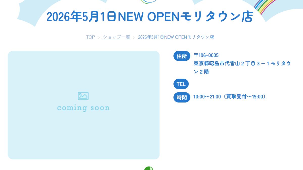 店舗情報を見てみると、2026年5月1日NEW OPEN モリタウン店と書いてあります。