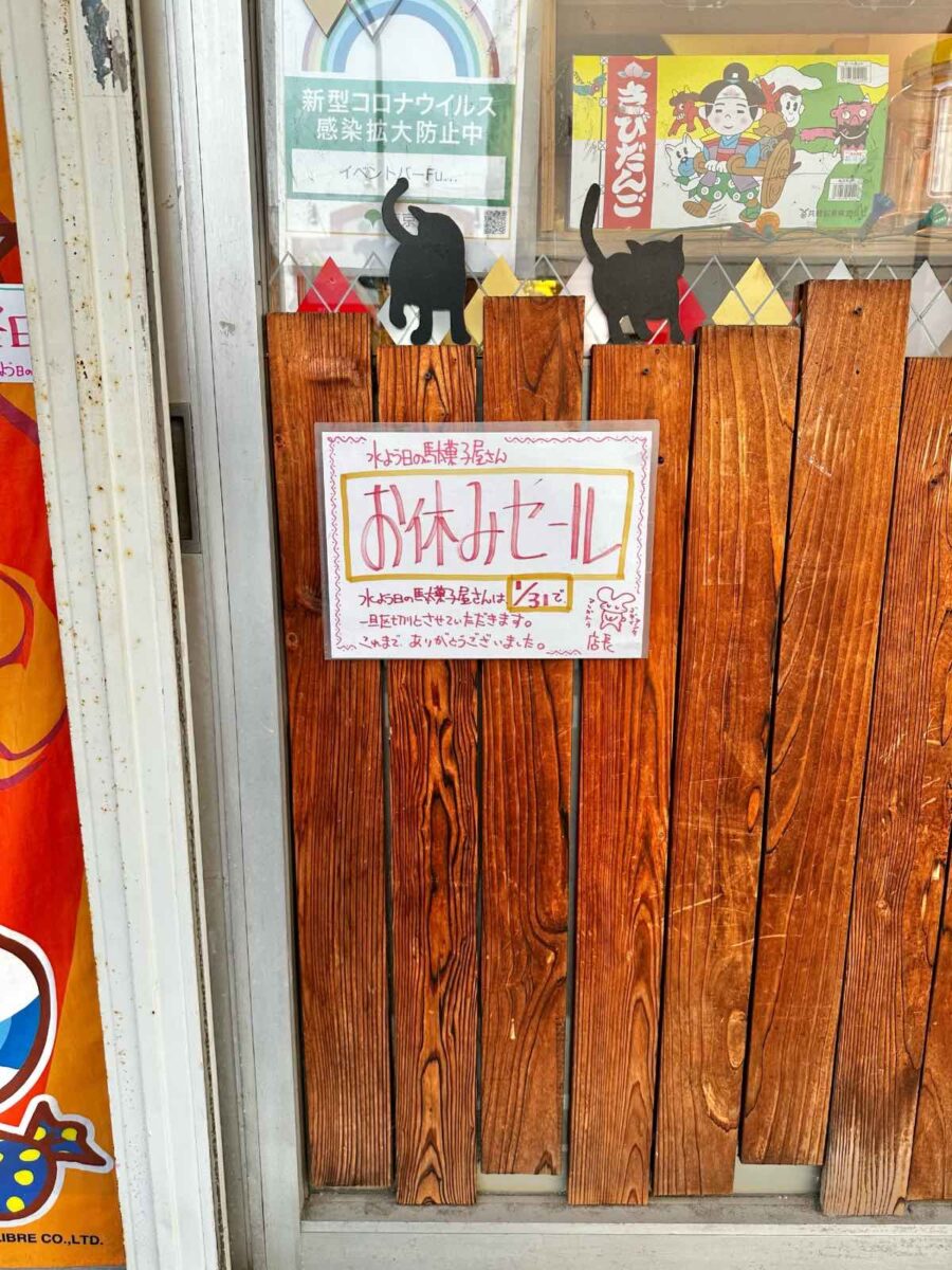1/31(土)水曜日の駄菓子屋さんを休業するとの貼り紙が出ていました。
