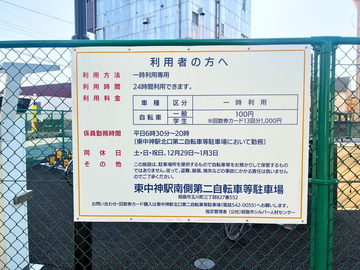 東中神駅南口で駐輪場がなくて困った……という人は利用してみてはいかがでしょうか。