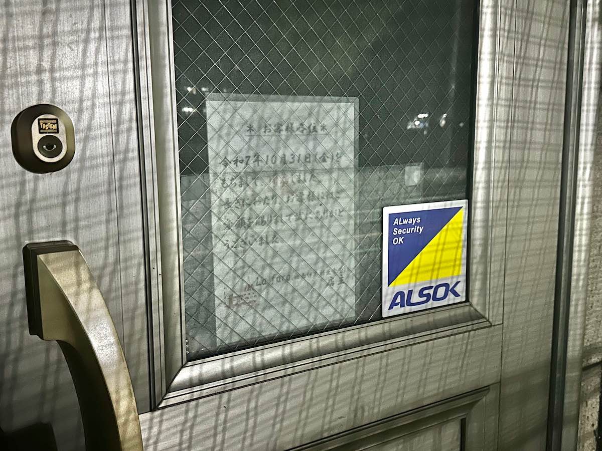 暗い写真で申し訳ないのですが、貼り紙がドアにありました。