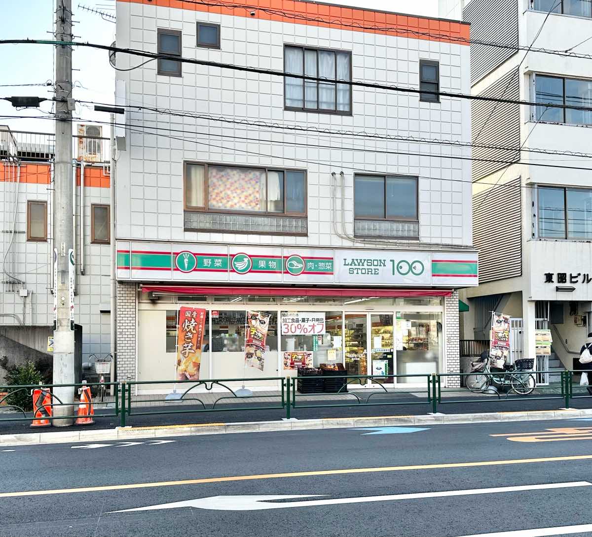 『ローソンストア100 東中神店』は江戸街道ぞいにあります↓