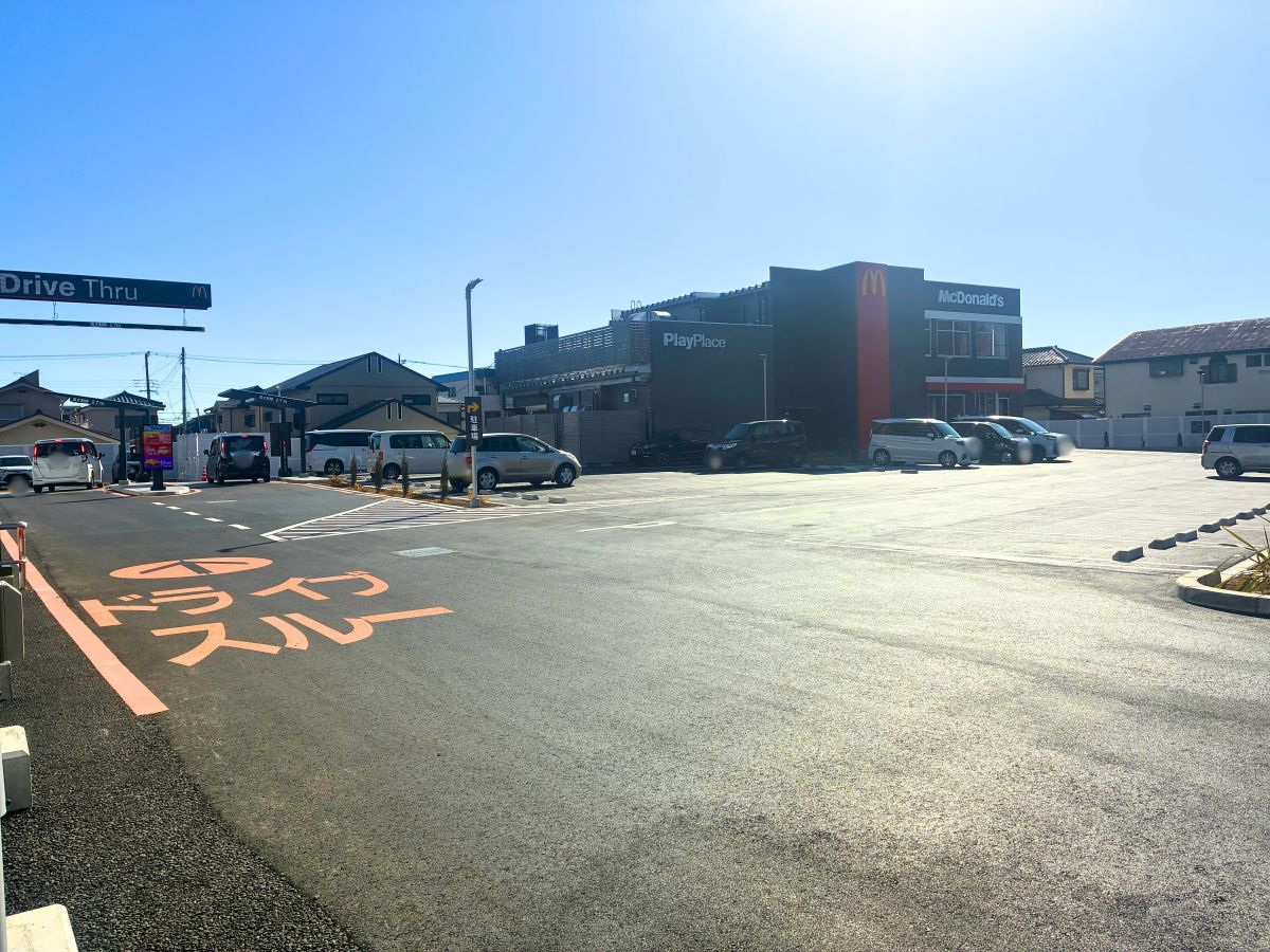 ドライブスルーへ向かう動線も広々していて安心感があります。
