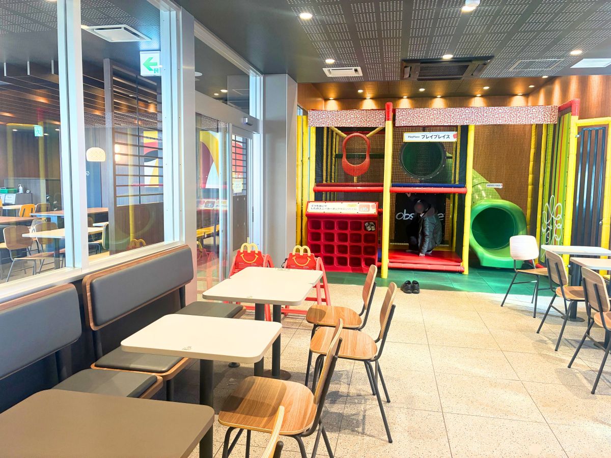 新しくなった『マクドナルド 昭島店』にはキッズが遊べるプレイプレイスがあるみたいです。