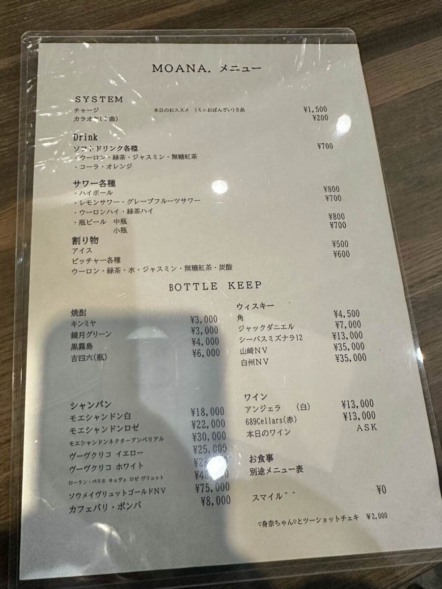 スナックなので、ドリンクの他、お通しありのチャージ料金がかかります↓