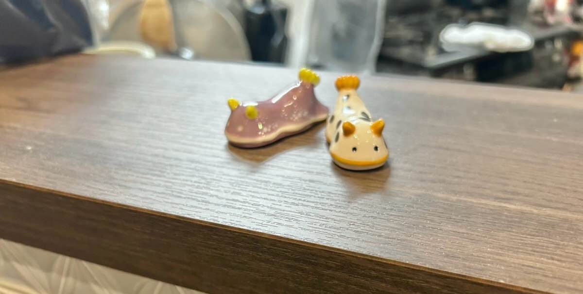 箸置きはジンベエザメやウミウシなど海の生き物↓