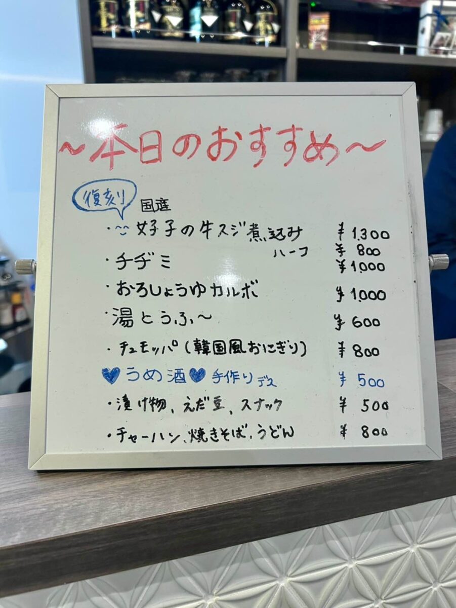 この中から「国産好子の牛スジ煮込みハーフ」「チヂミ」をチョイスしました。