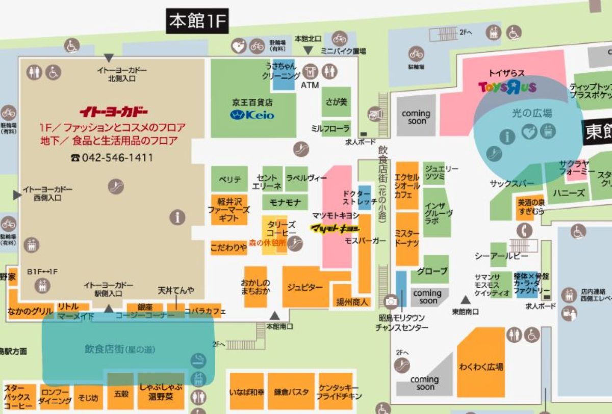 イベント開催場所は飲食店街と東館1階の光の広場です。