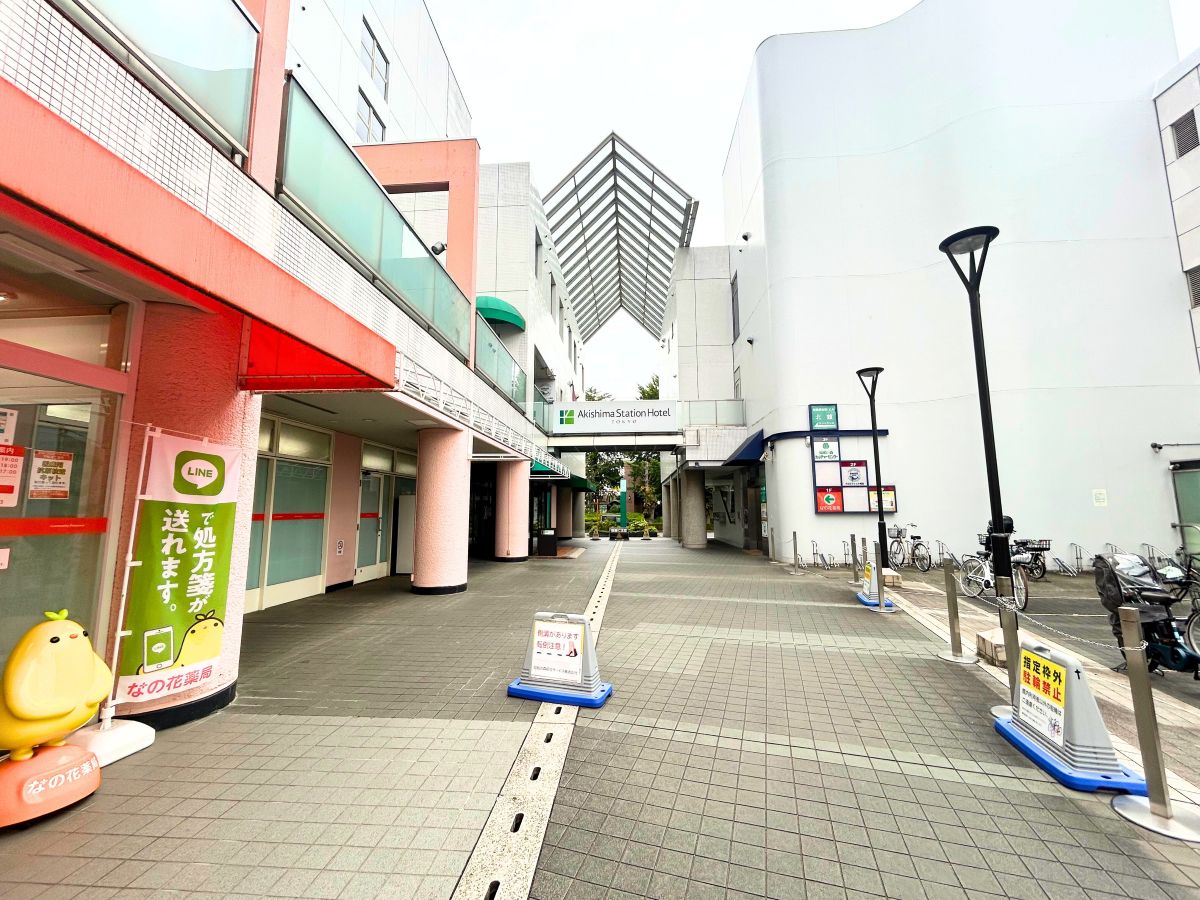 店舗から振り返ると昭島駅のロータリーとモリタウンが見えます↓