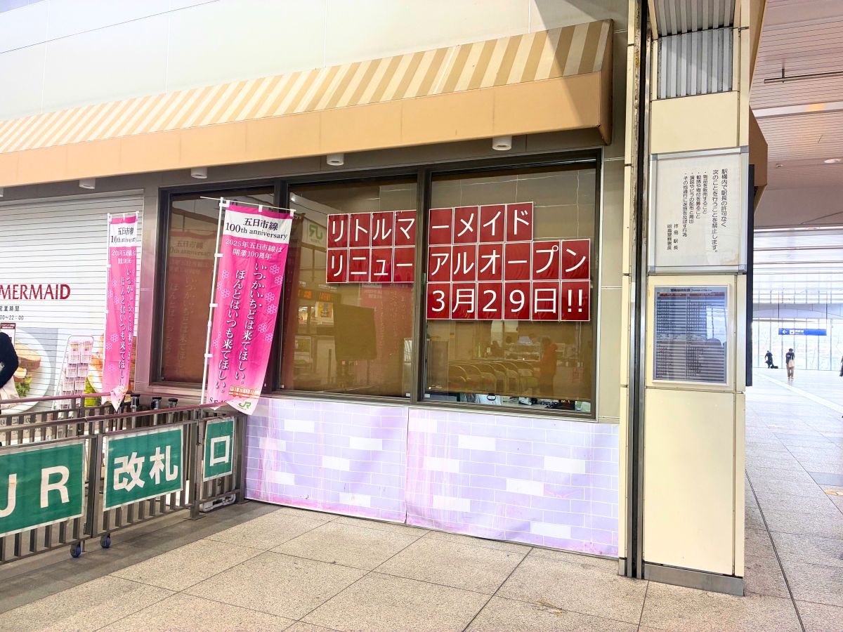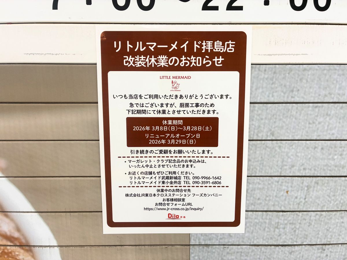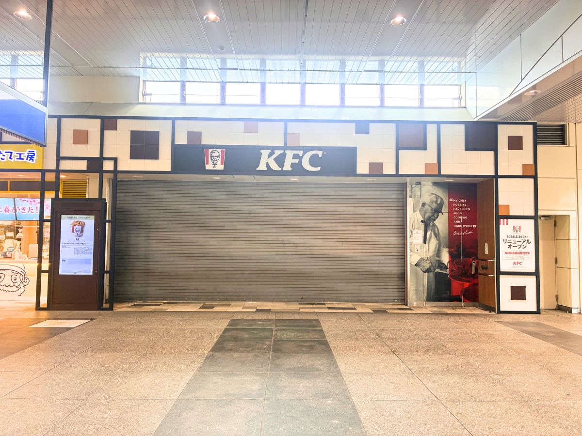 【リニューアル】3月末に2店舗リニューアル!JR拝島駅と西武拝島駅をつなぐ通路にある『リトルマーメイド 拝島店』と『KFC(ケンタッキーフライドチキン) 西武拝島店』が改装してる