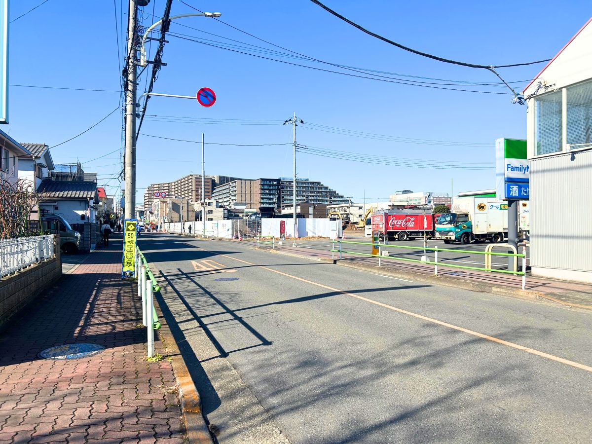 中神駅方面から見ると『ファミリーマート』のお隣に工事中の柵が設置されているのが見えます↓
