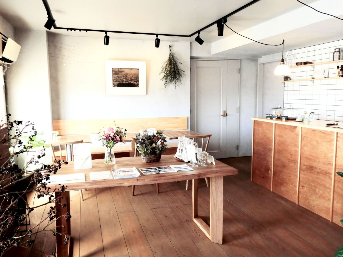 お家みたいに落ち着く雰囲気。温かみのある木目調の中に、植物がたくさん。