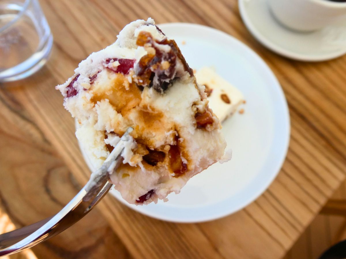 レアチーズのようなヨーグルトのようなケーキの中に、