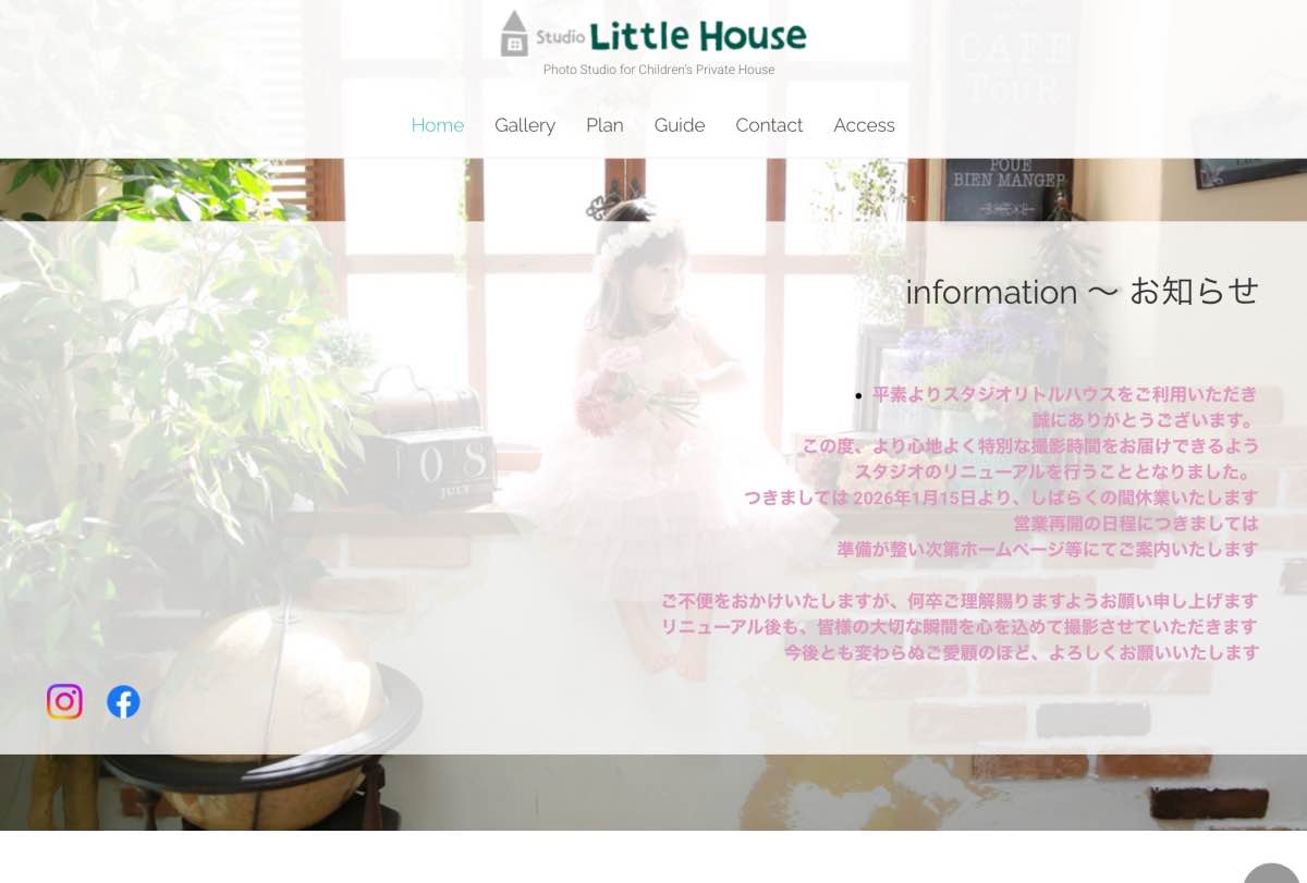 『スタジオリトルハウス』が休業するというお知らせを発見しました↓