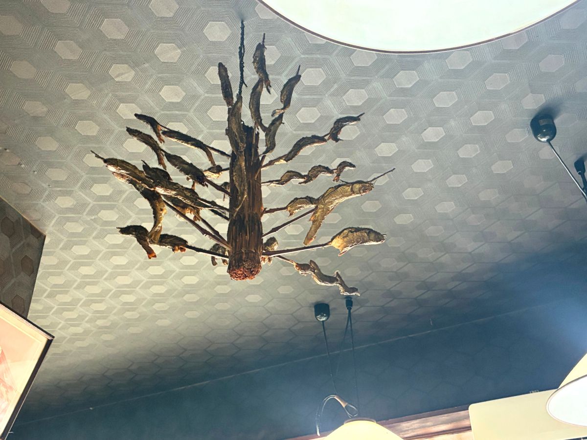 天井に魚の串焼き!?↓